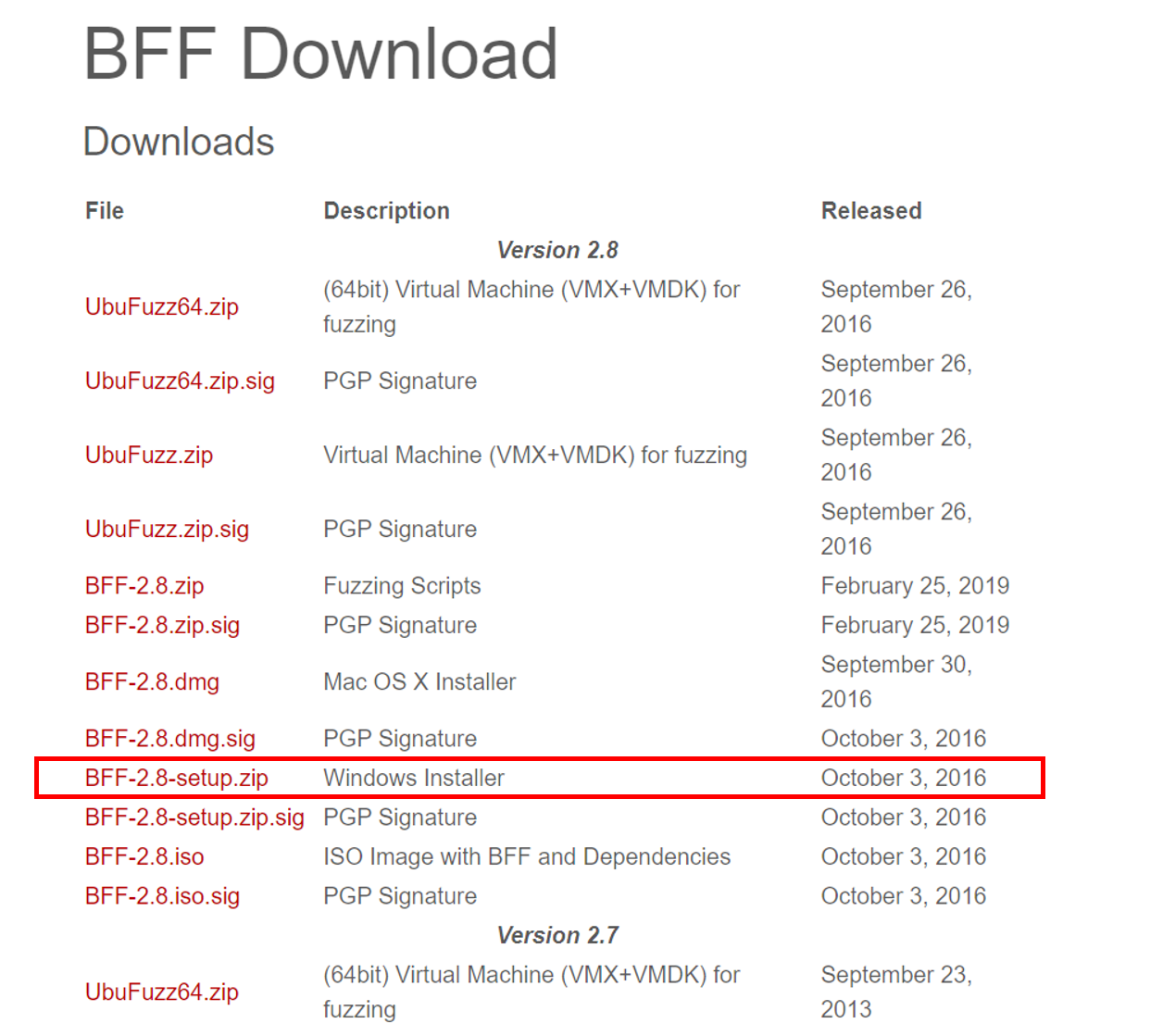 그러면 BFF=2.8-setup.zip 을 다운로드한다.