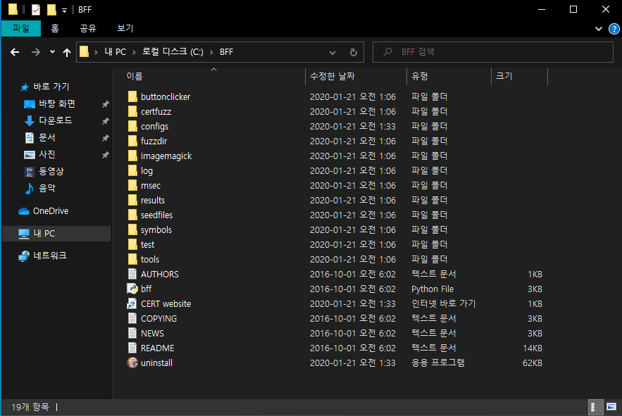 이후 압축을 풀면 BFF-2.8-setup.exe 파일이 있을 것이고, 이 실행 파일을 실행하여 쭉 진행하면 BFF Fuzzer의 설치는 끝난다.