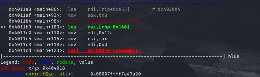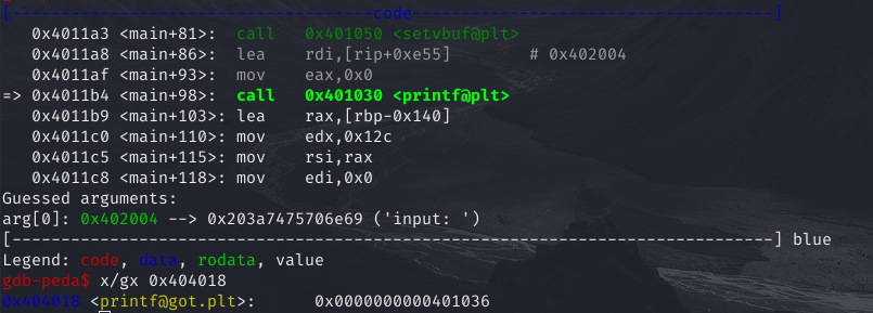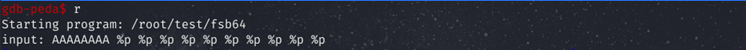 #include <stdio.h> #include <stdlib.h> #include <unistd.h> int main(void) { char buf[300]; setvbuf(stdin, 0, 2, 0); setvbuf(stdout, 0, 2, 0); printf("input: "); read(0, buf, 300); printf(buf); exit(0); }gcc -no-pie -o fsb64 fsb64.c