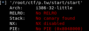 nx bit disabled 인것으로 shell code를 이용해야 하는것을 바로 알아차려야 했었다… 계속 syscall 어떻게 이용할까만 생각을해버려서 시간만 날려버렸다.