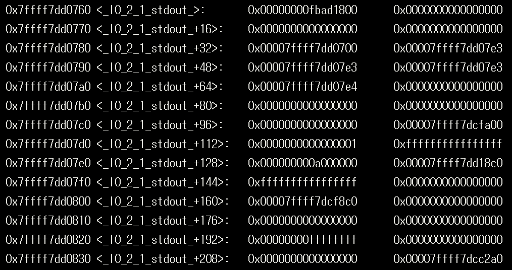 stdout을 이용하여 leak을 해야하는데, 그러기 위해서는 stdout을 마음대로 덮어쓸 수 있어야 한다.