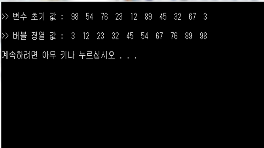 - 비교 후 i 번쨰가 더 큰 숫자이면 두 숫자의 위치를 바꿔주는 코드