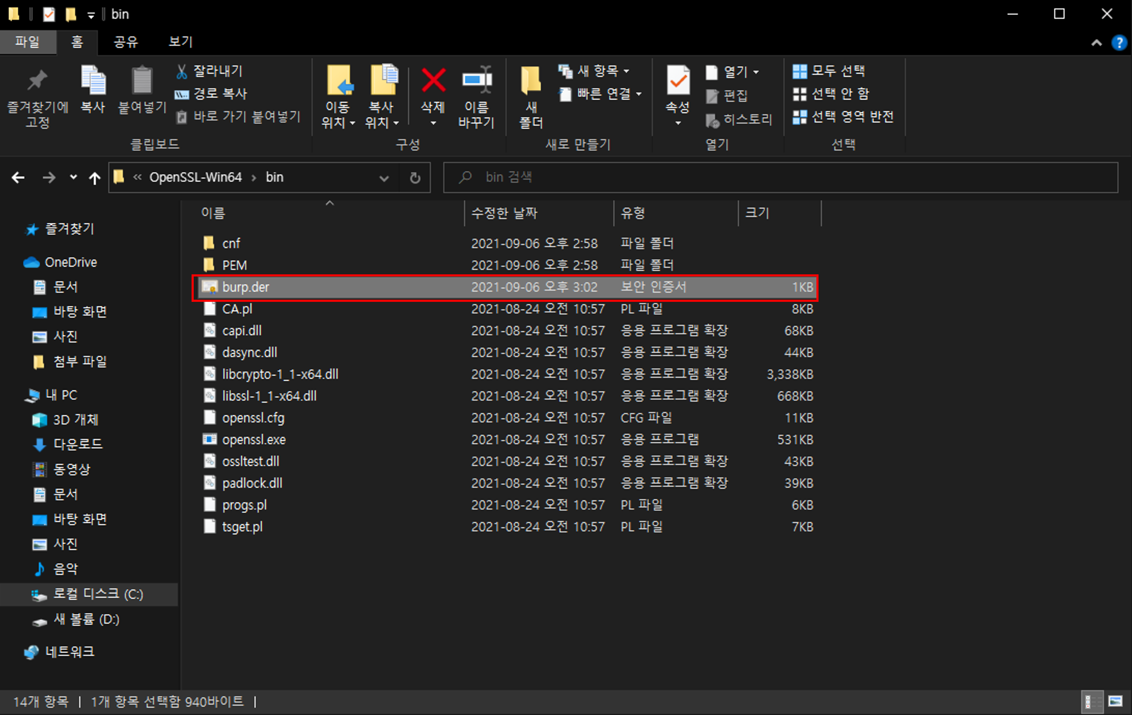 마지막으로 변환한 pem 파일의 이름을 이전에 추출한 해시값으로, 확장자를 ". 0"으로 변경해주면 된다.