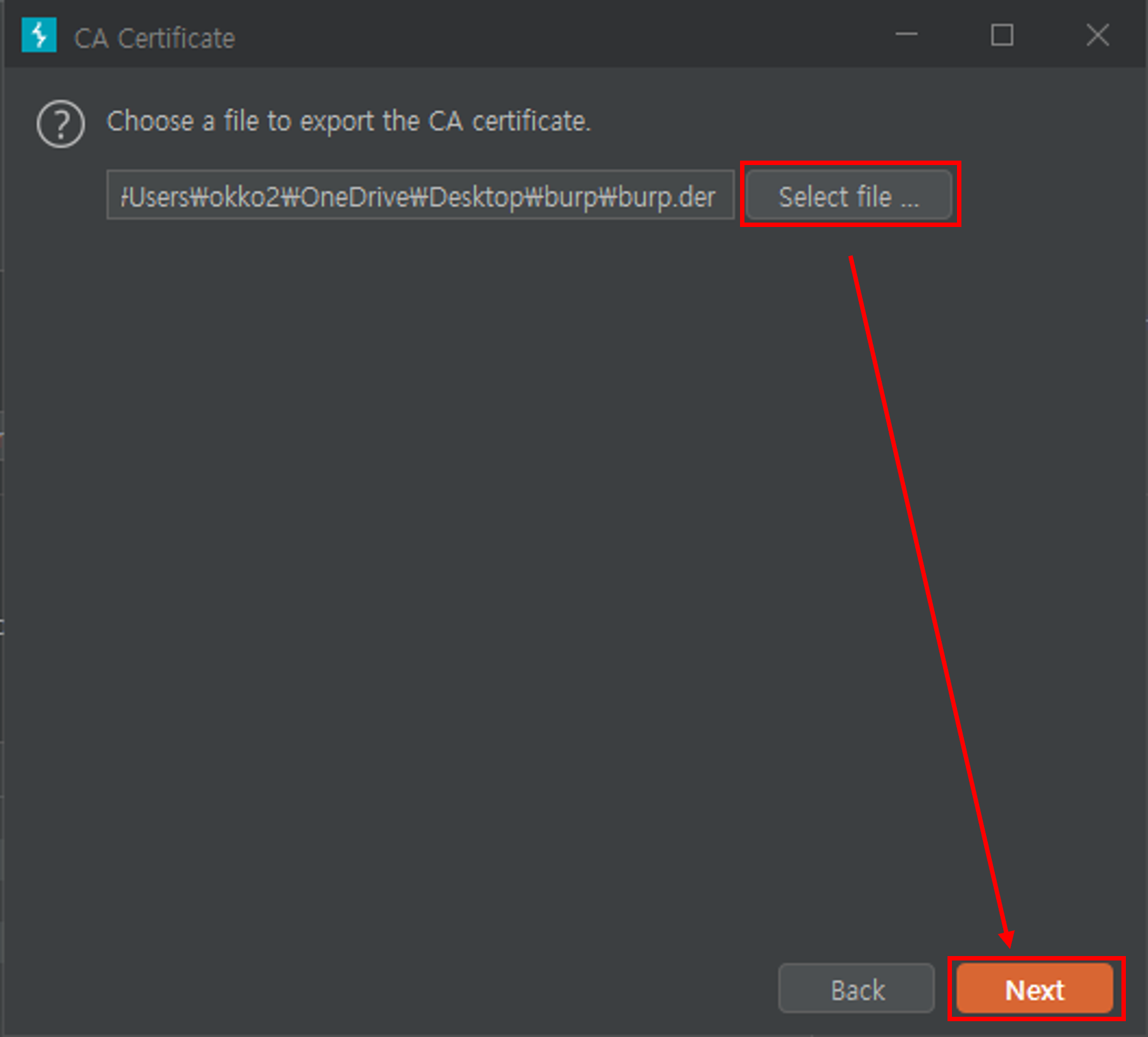 Burp 인증서 추출