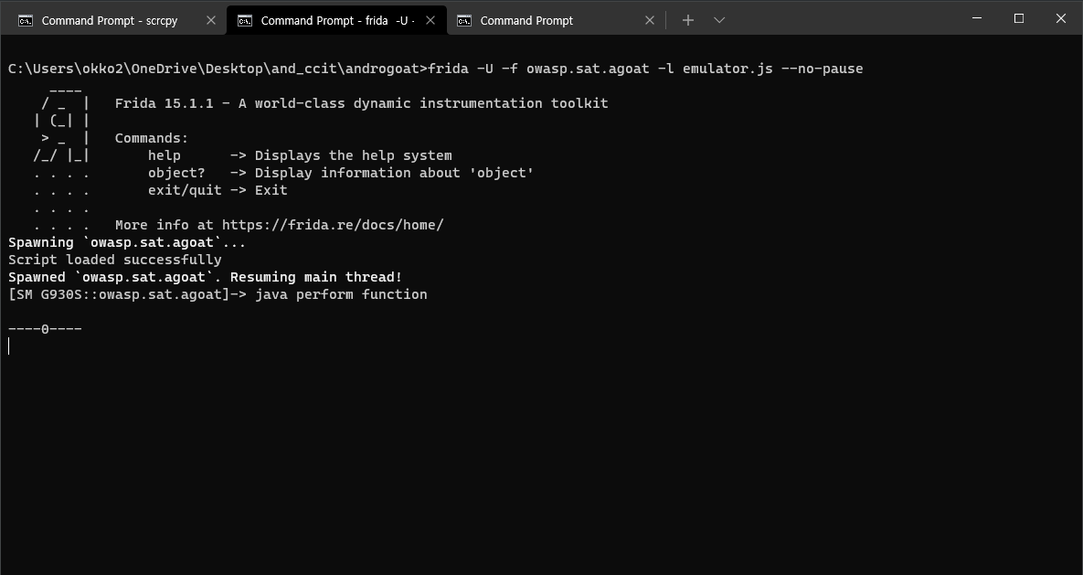 frida를 이용한 우회도 이전 Root Detection과 거의 유사하다.