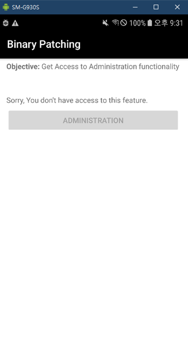 Binary Patching 항목을 눌러보면 다음과 같이 액세스 권한이 없어서 기능을 사용할 수 없다는 문구와 비활성화되어있는 버튼을 확인할 수 있다.