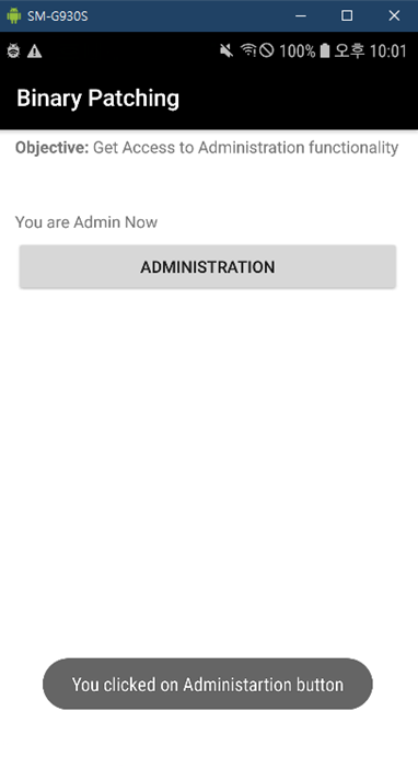 onCreate() 함수를 확인해보면 isAdmin() 함수 반환값이 True로 반환해야 "You are Admin Now"라는 문자열이 설정되거나 ADMINISTRATION버튼이 활성화되는 것을 확인할 수 있다.