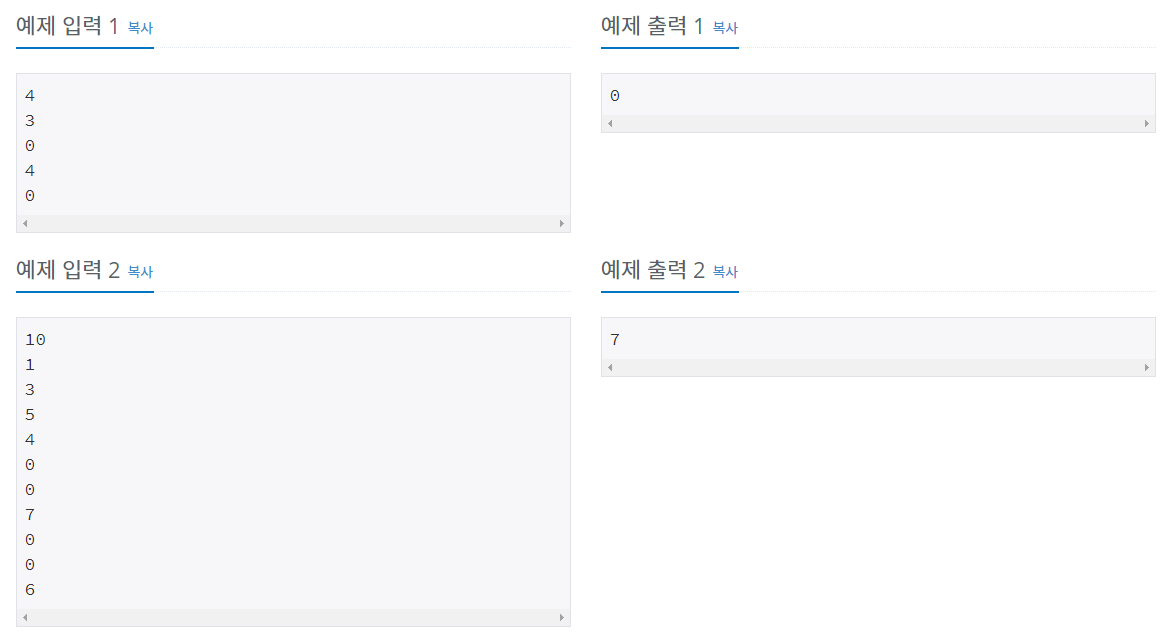 이후 K개의 줄에 정수가 1개씩 주어진다. 정수는 0에서 1,000,000 사이의 값을 가지며, 정수가 "0" 일 경우에는 가장 최근에 쓴 수를 지우고, 아닐 경우 해당 수를 쓴다.