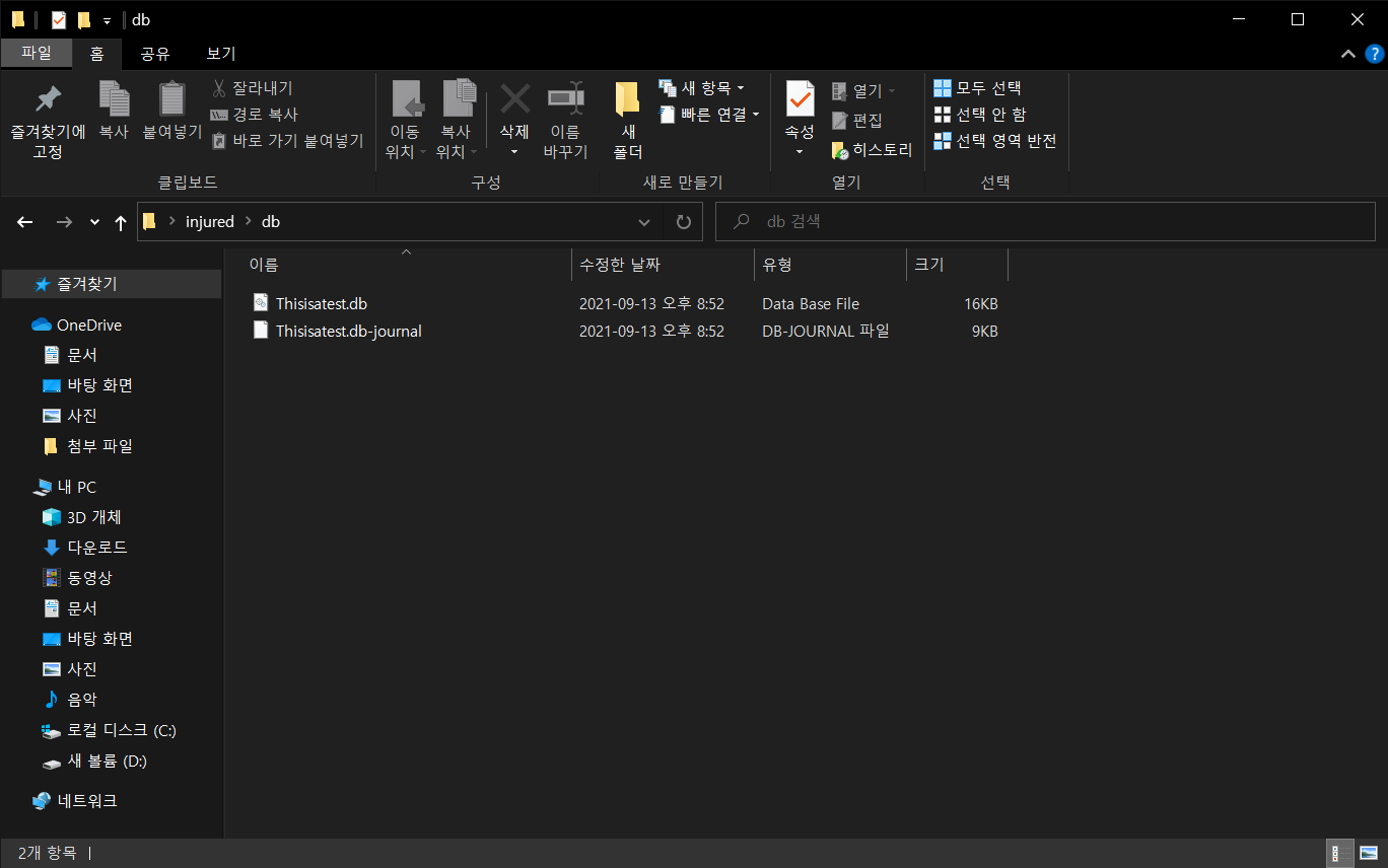 이후 압축을 풀어주면 다음과 같이 데이터 베이스 파일을 가져올 수 있다.