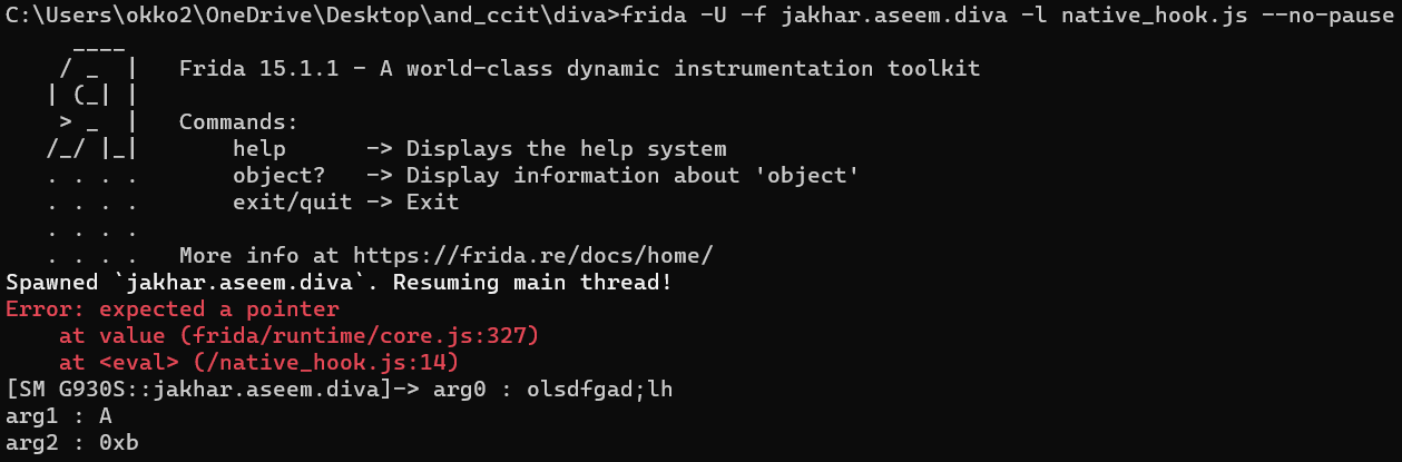 코드는 libdivajni.so 라이브러리에서 사용 중인 strncmp() 함수를 후킹 한 후 입력 값이 A라면 모든 인자를 출력한다. 그리고 함수가 종료될 때 0을 반환한다.