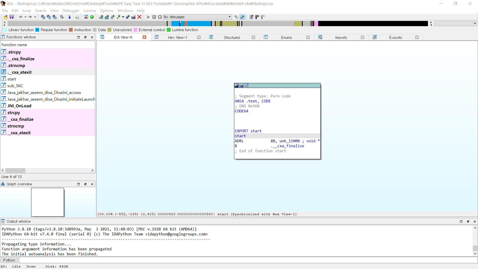 이후 찾은 라이브러리를 ida와 같은 disassassembly를 사용하여 열어준다.