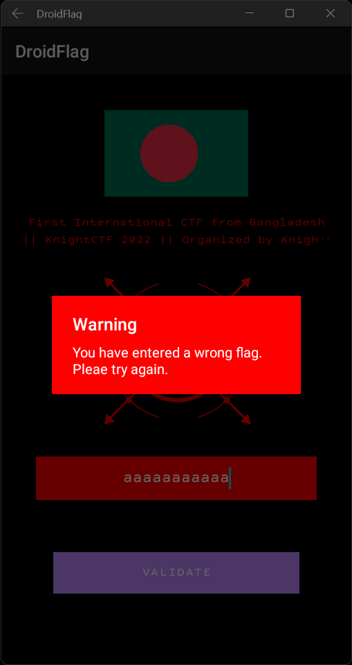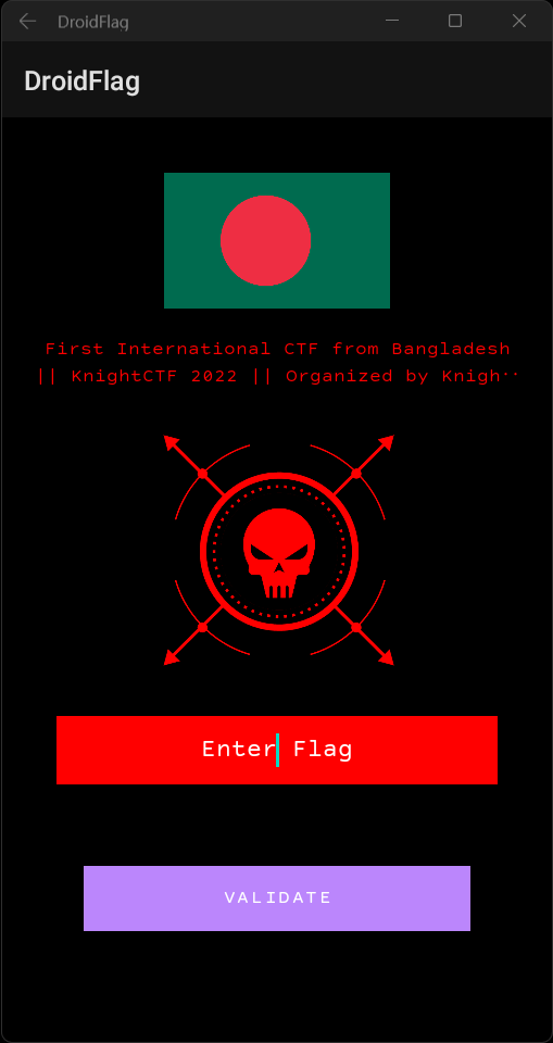 - “VALIDATE”라는 문자열이 적힌 Flag 인증 버튼