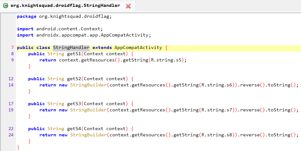 var str_hdr = Java.use('org.knightsquad.droidflag.StringHandler');
