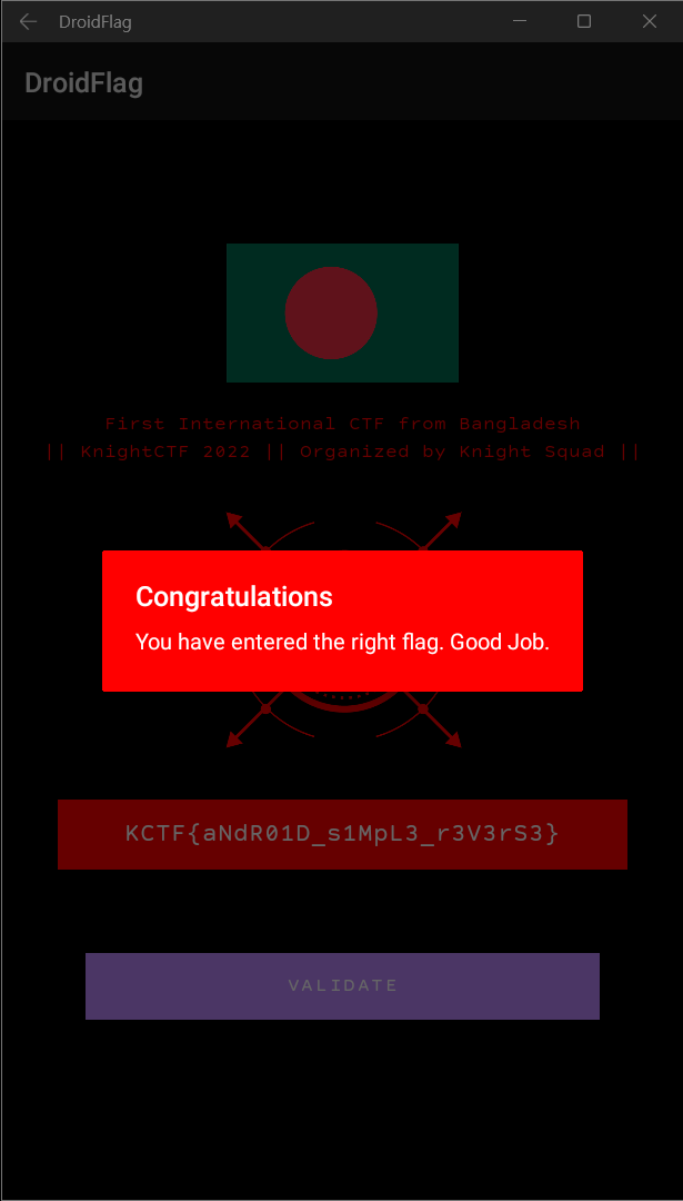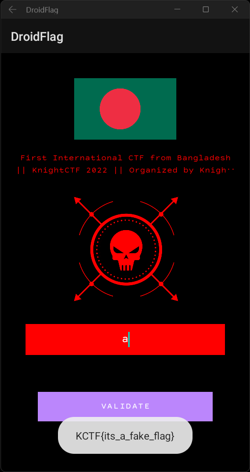 Toast.makeText(MainActivity.this, KnightCTF.flag, 0).show();